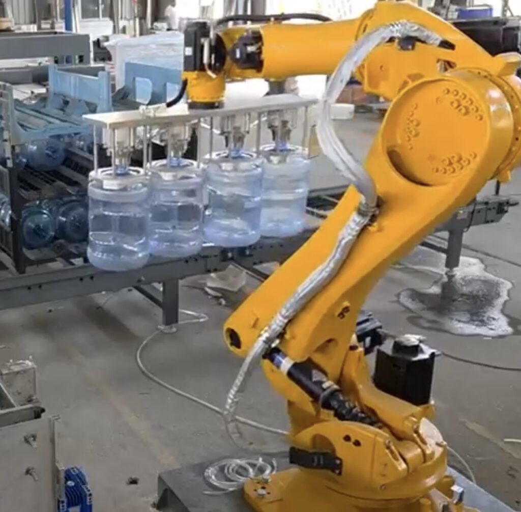 Our Robot Palletizer for 5 Gallon PET Bottles is a fully automatic, industrial-grade system designed for high-efficiency 2-way palletizing. It enables continuous production with stable, accurate stacking while significantly reducing labor requirements for water and beverage plants. Powered by an advanced robotic arm drive system and controlled by a PLC-based microcomputer, the palletizer delivers high performance, energy efficiency, and reliable operation with enhanced hygiene and safety standards
